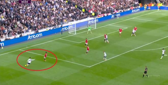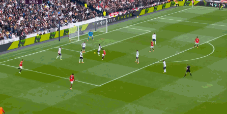 而在丢球时段,尤其是第一球的时候,单单回顾射门环节,你可能会觉得曼联的运气很差,皮球打在德里赫特的脚上形成了变线: