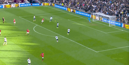 但作为曼联后卫线最强一环,你也很难苛责德里赫特了,因为比赛临近结束的他已经几乎耗尽,不仅要看到他需要面对替补上来的特尔,还要看到他在换人之前作为边中卫的表现: