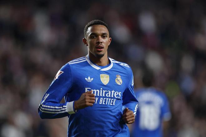 第85分钟,皇马第2粒丢球过程中,阿诺德虽然回防帮助防守,却只是匀速跑眼睁睁目送阿尔瓦罗低射破门,沦为背景板。